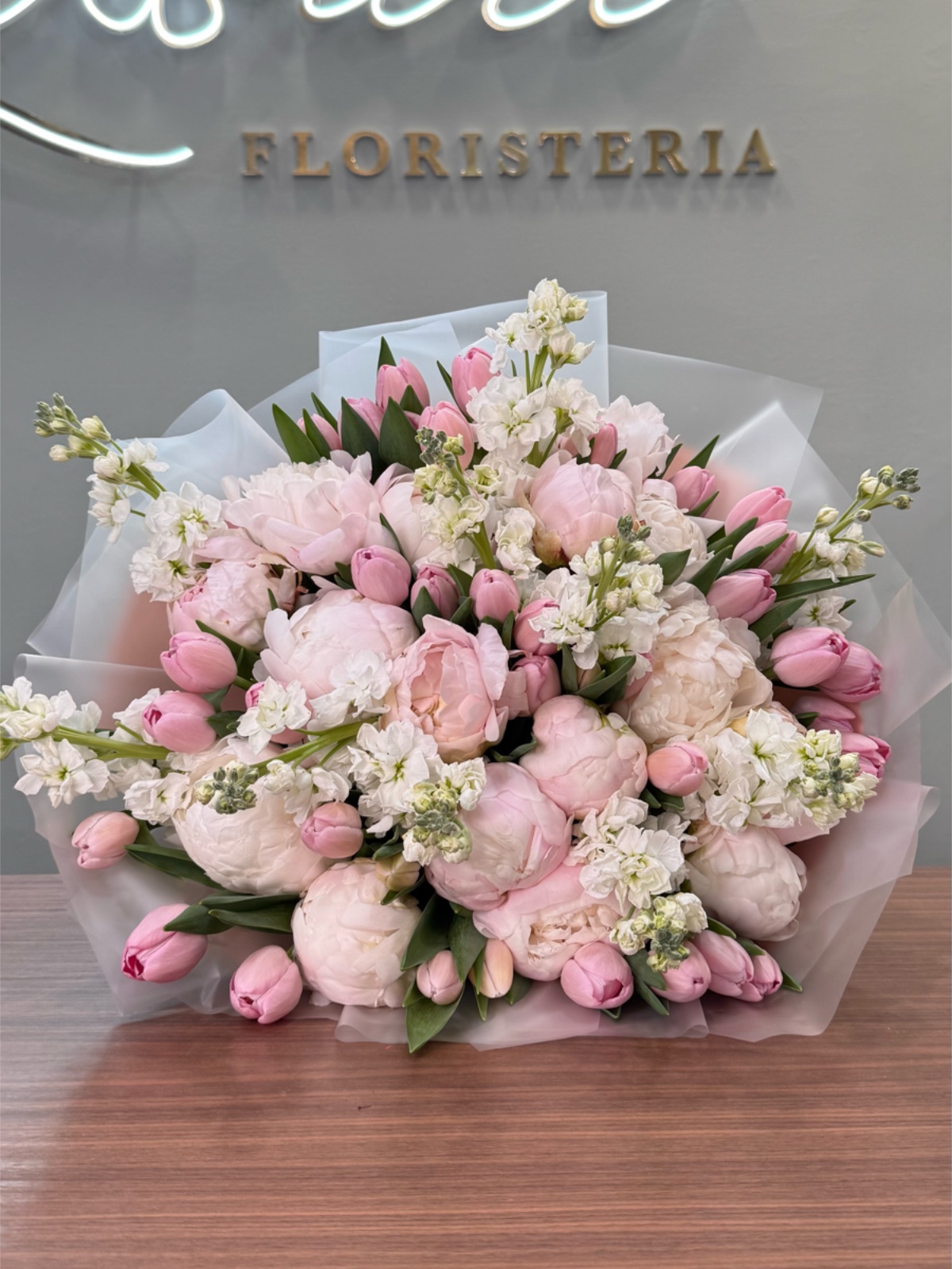 Este ramo combina peonías, tulipanes y matthiola de temporada. Su paleta de tonos pastel aporta frescura y ligereza. Es ideal para regalos primaverales y celebraciones delicadas. Destaca por su aroma y textura. Una composición elegante y llena de encanto.