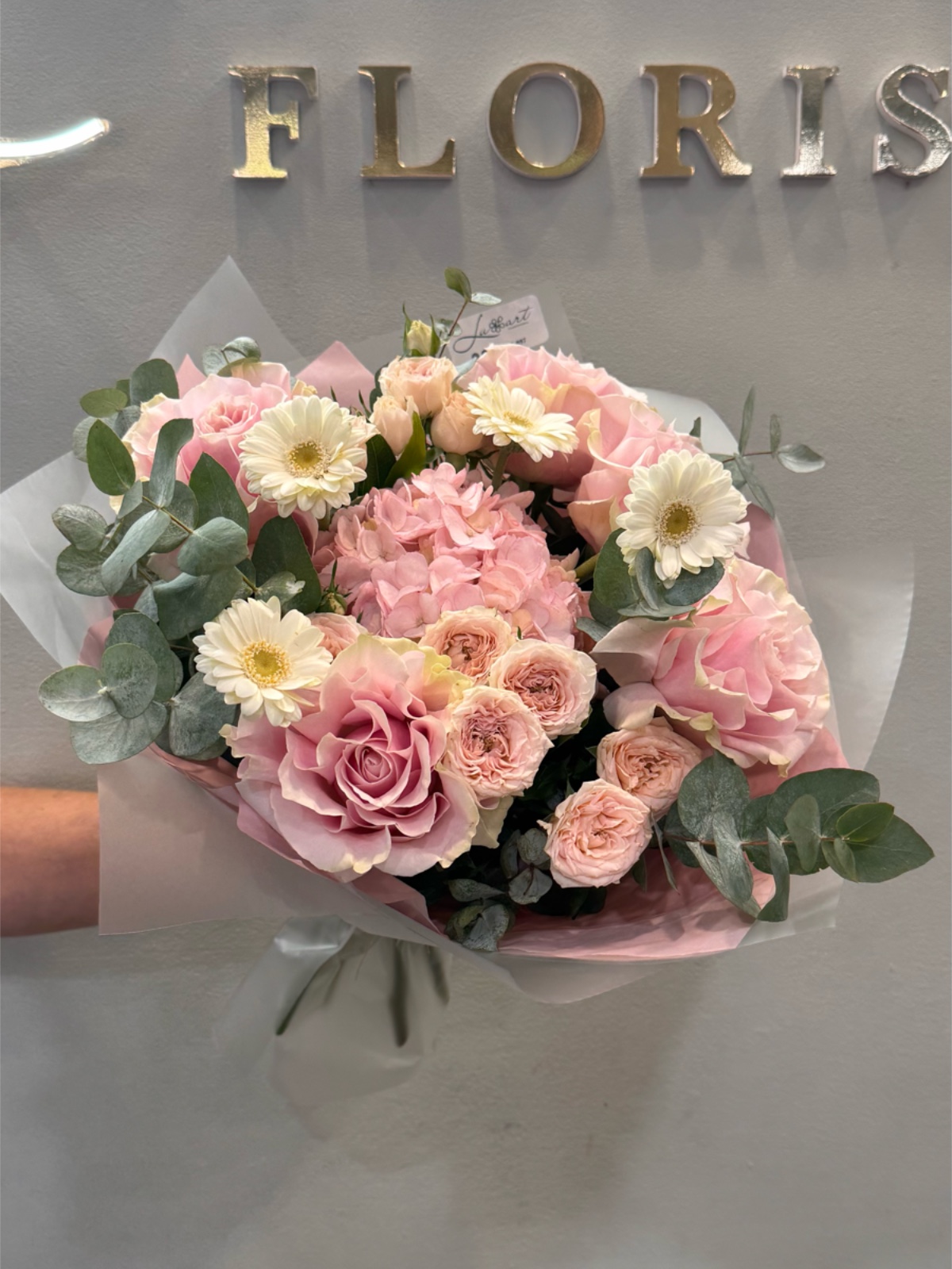 Este ramo incluye gerberas frescas combinadas con flores de temporada en tonos suaves. Su composición es alegre y equilibrada. Es ideal para regalos frescos, cumpleaños o detalles espontáneos. Transmite luminosidad y encanto natural. Un ramo delicado y lleno de vida.